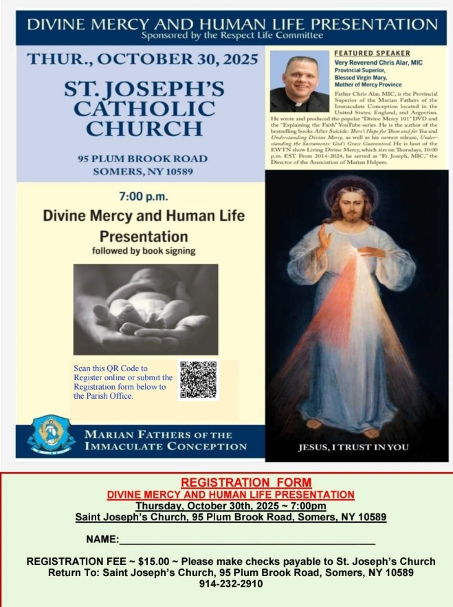 Divine Mercy and Human Life Presentation followed by book signing.