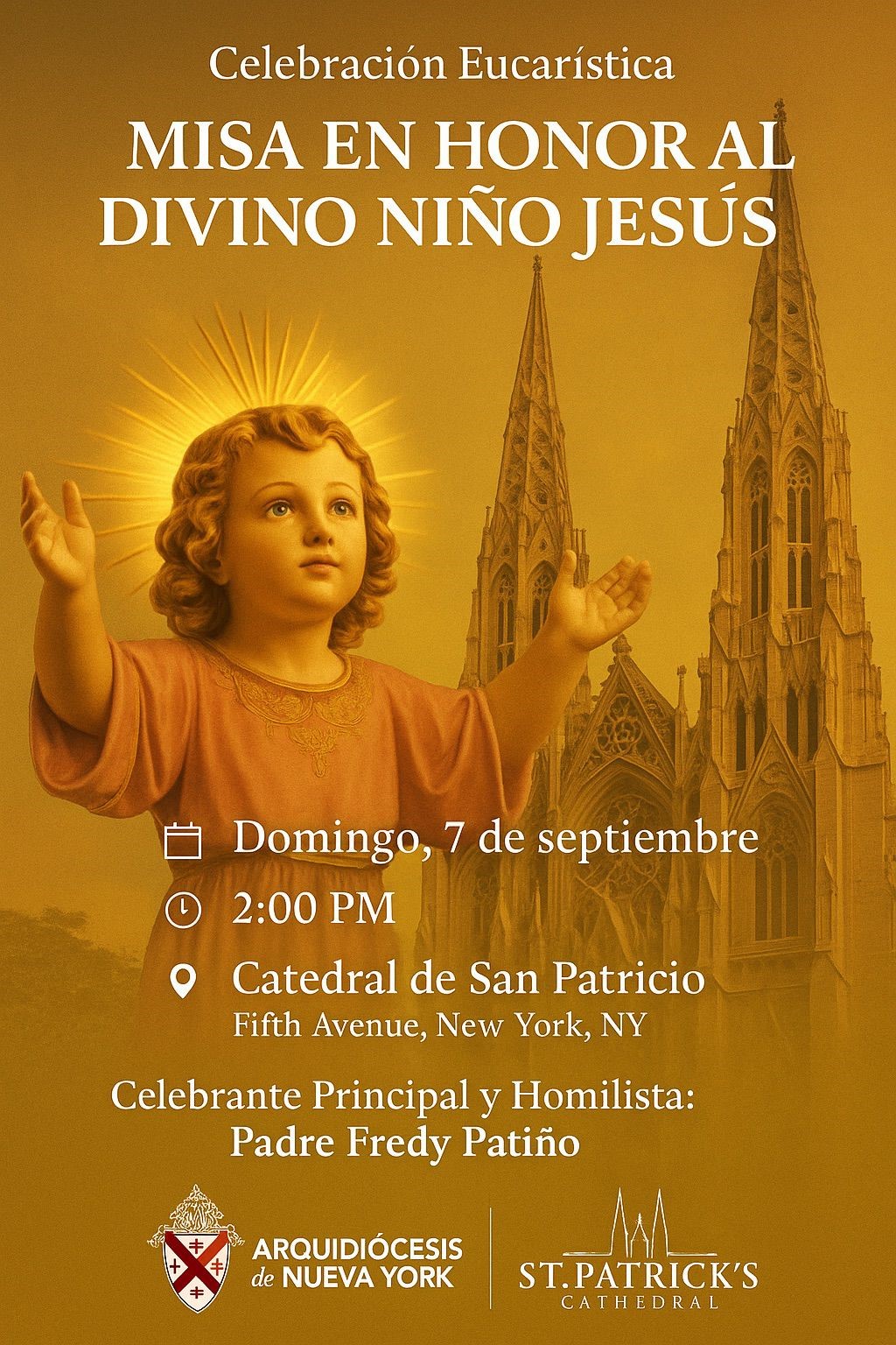 Le invitamos a la Catedral de San Patricio a celebrar la Misa en Honor al Divino Niño Jesús. ¡Todos son bienvenidos!