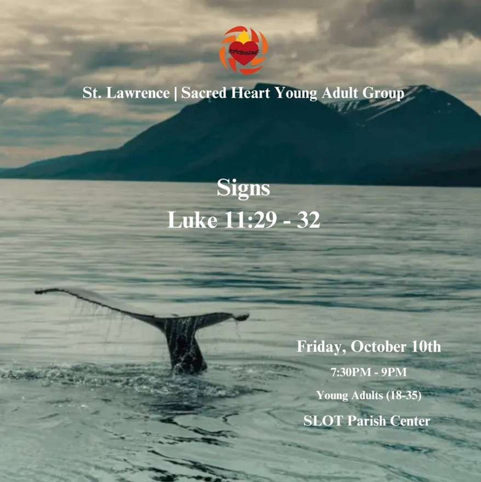 Come and join us at our next meeting on Friday, October 10 at 7:30 PM! We will be talking about the signs mentioned in the Gospel of Luke. Bring a friend and we hope to see you there!